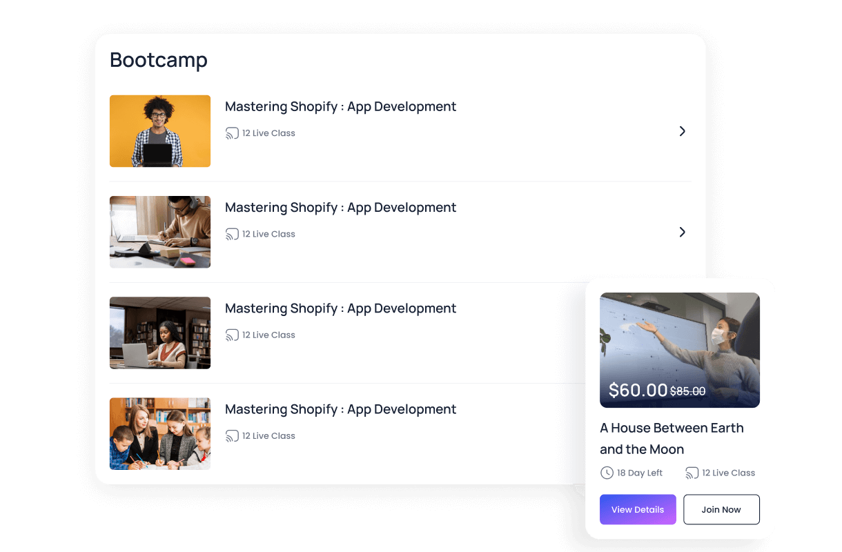 Create and manage courses easily, attract learners worldwide, and start earning revenue with our all-in-one education business platform today.