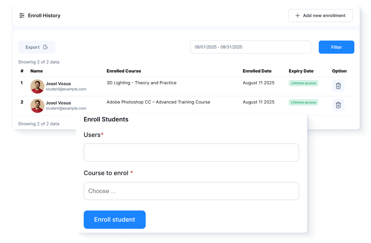 You can easily design personalized course certificates using our built-in certificate builder, no coding or design skills needed.