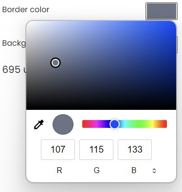 You can also choose the Border color and Background color from the color picker. Simply click on the color to open the color picker and choose your preferred color. You can drag along the picker to your preferred color shade, or you can also input the specific RGB values of the color manually.