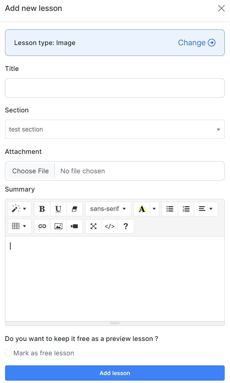 Select the "Add lesson" button to add a new Image lesson.