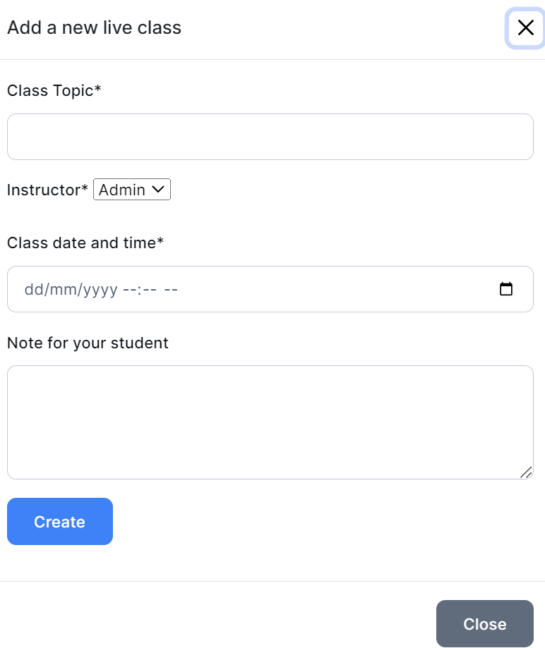 Then, a window will pop up for adding the details of the live class.