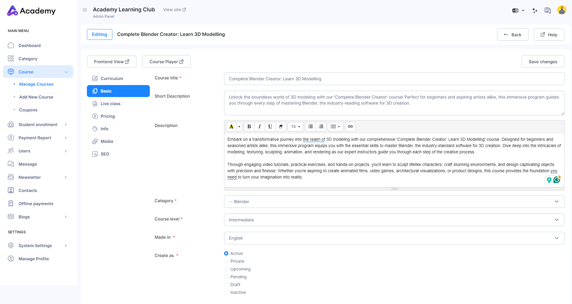 In the Academy LMS Laravel application, you have the option to designate certain courses as confidential or private. When a course is marked as private, it won't be visible in the application's interface.