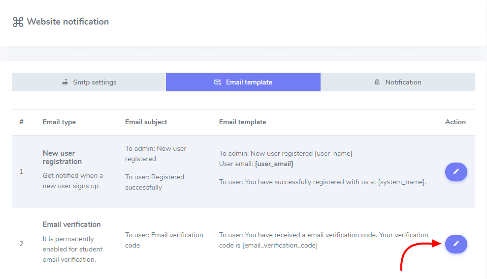 In this settings panel, you can configure your SMTP settings, edit your email templates, and manage system notifications.