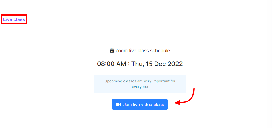 Your students can join their class from their panel. For this, they can follow the steps below: