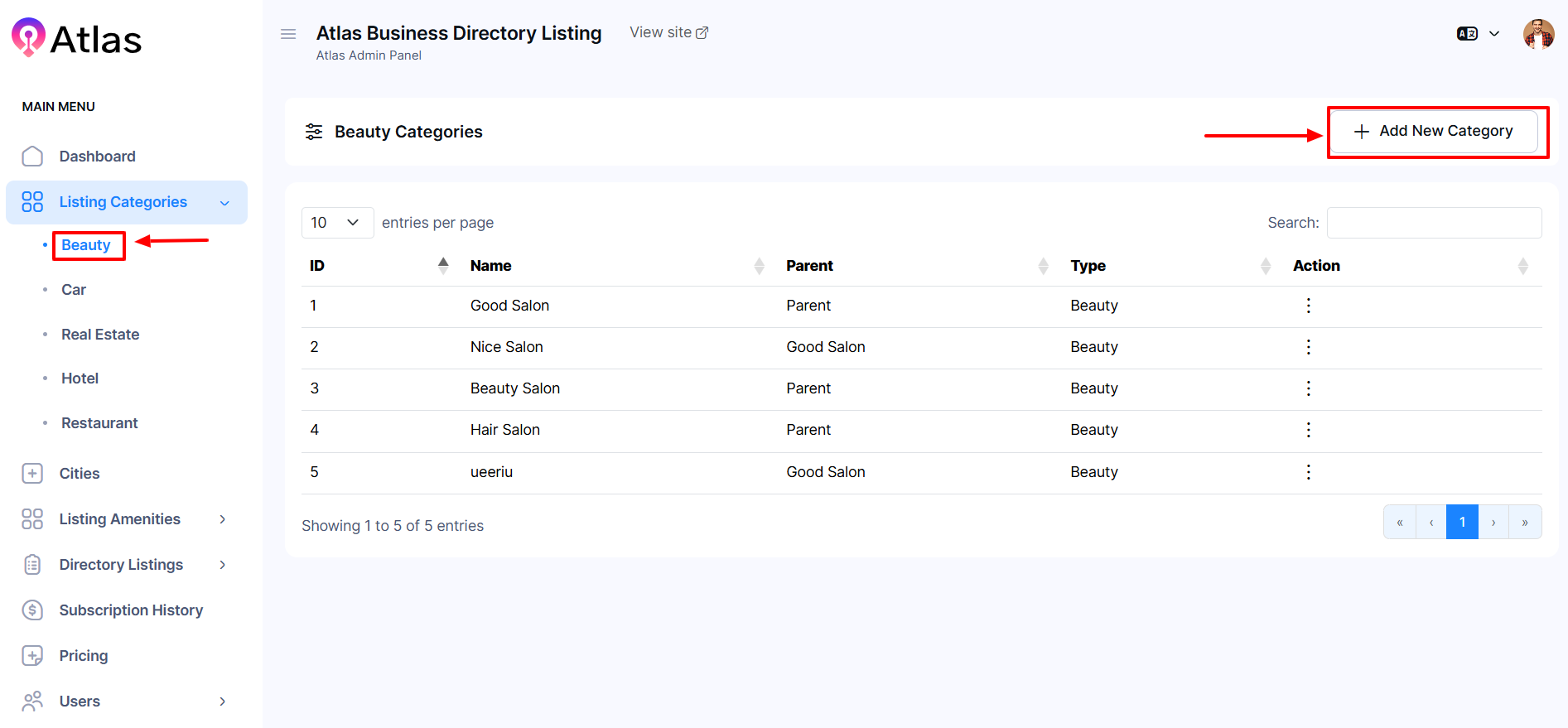 As an admin, you can create and manage categories on your website. Customers can use these categories to list their directories, making it easier to organize and showcase their content effectively.