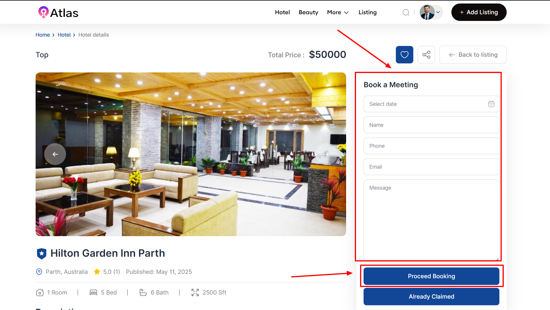 - Once all fields are completed with data entry, click the Proceed Booking button to apply the updates.