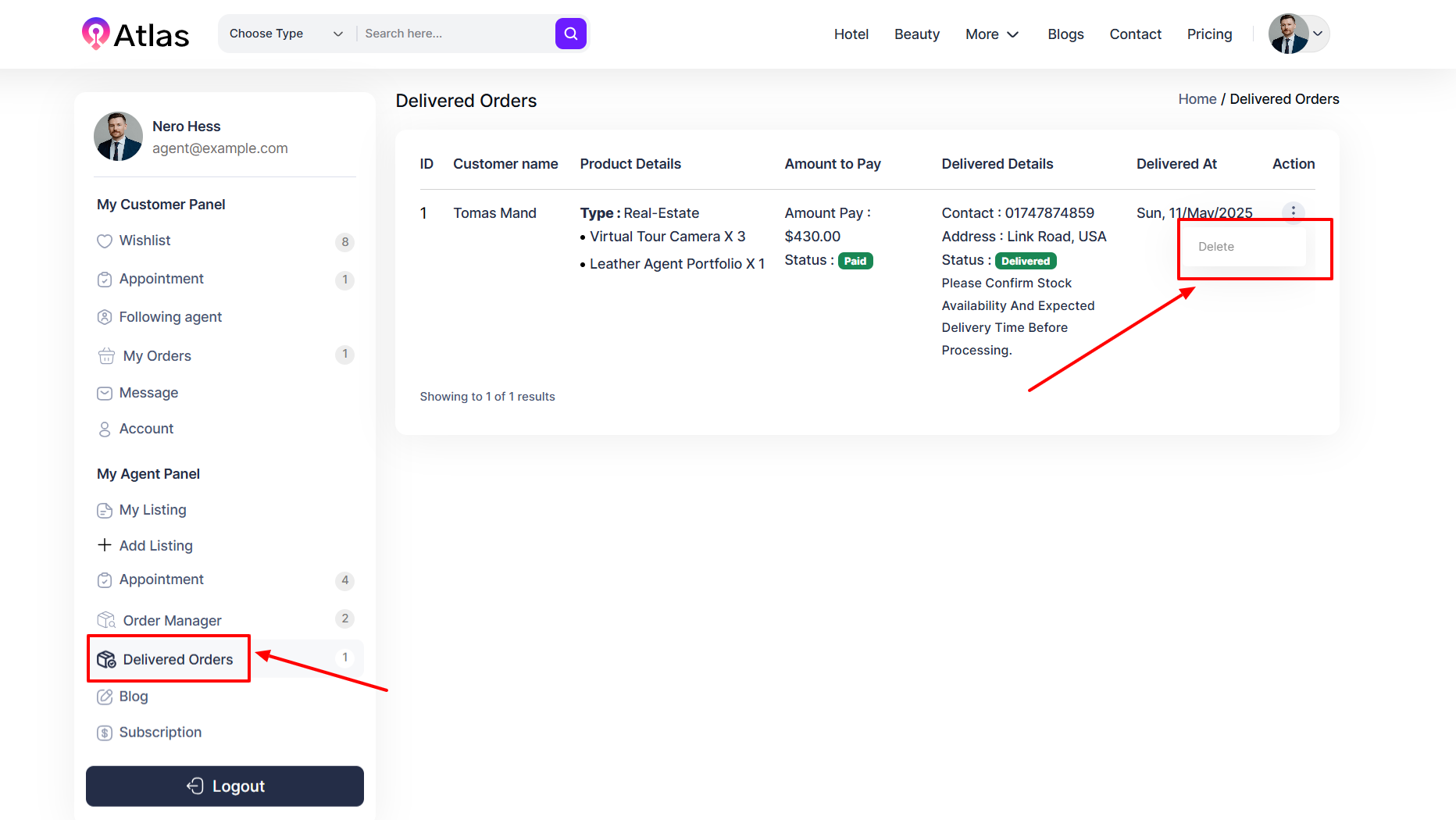 The Delivered Order feature in Atlas Laravel confirms successful order completion, providing businesses with delivery status, tracking clarity, and transaction confidence, which strengthens trust, enhances record accuracy, and supports smooth, reliable operations and customer satisfaction.