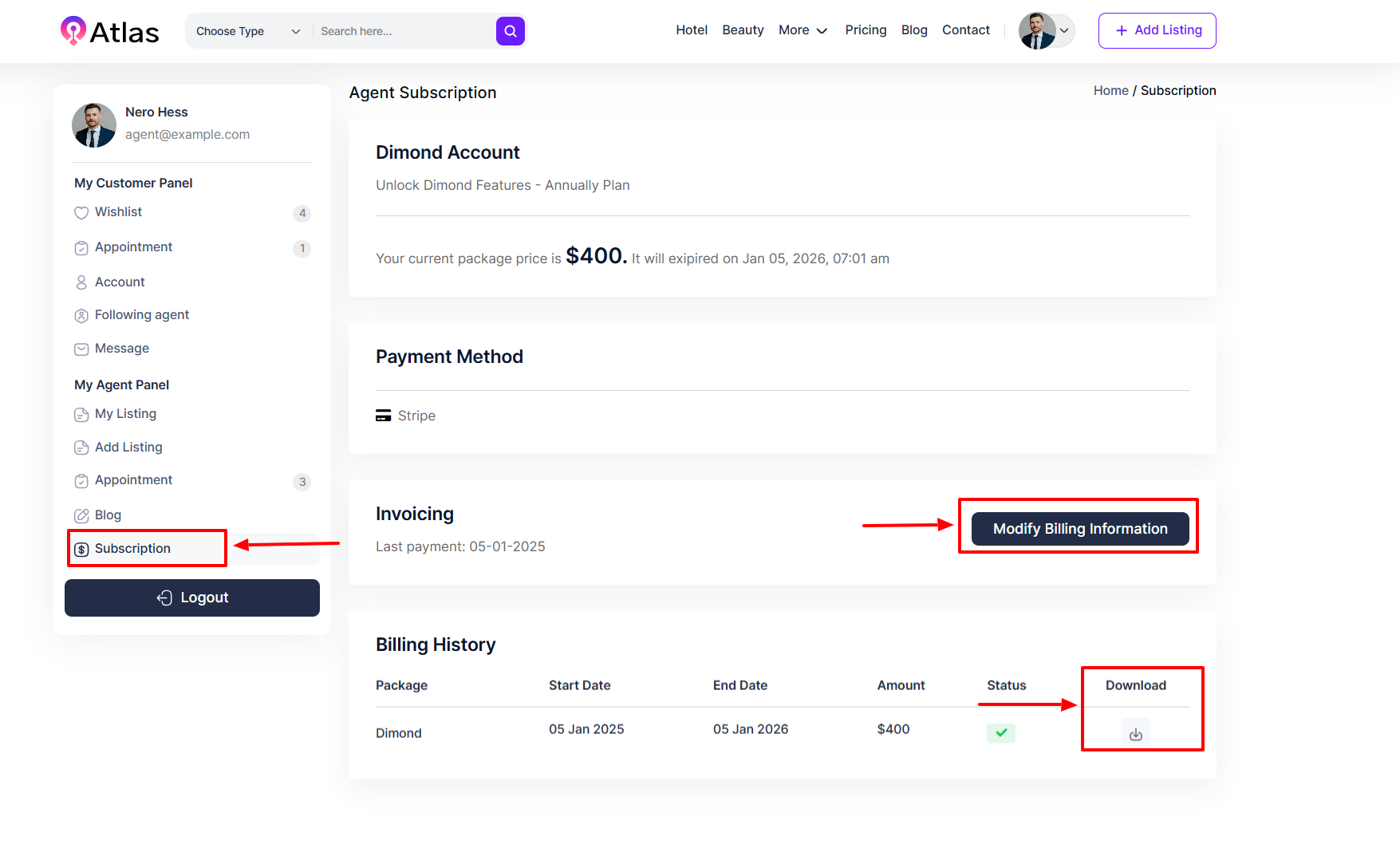 In Atlas Laravel, subscription is a business model where customers pay a recurring fee monthly, yearly, or on another time frame to access a product or service. Instead of a one-time purchase, subscribers continue to receive benefits as long as they keep paying. This model is widely used in digital services, entertainment, education, and the software industry. It's cost-effective, flexible, scalable, and requires less commitment.