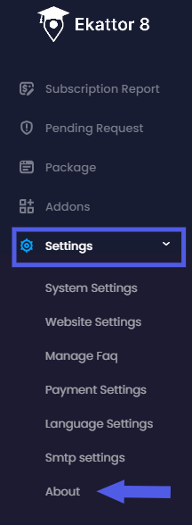 Before Installing this process we would recommend you to check your application version. For this, you have to navigate to the "About" section from the "Settings" button.