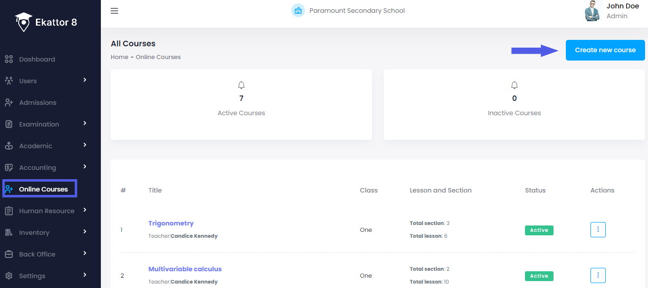 For creating a new course you need to fill in some basic sections. Below steps might be helpful for creating a new course;