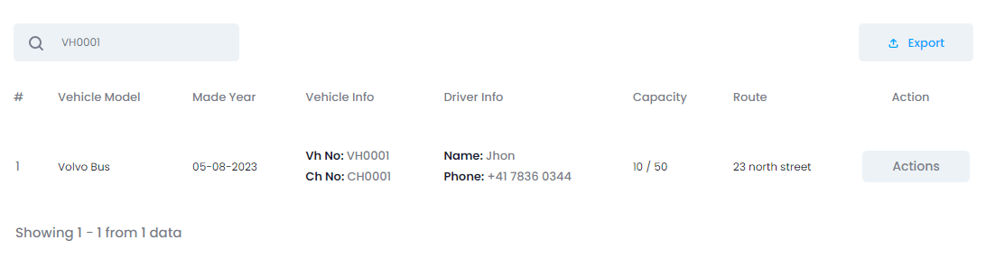 Note: One driver can be assigned with more than one vehicle but one vehicle can not be assigned by two drivers. If you try to add another driver in one vehicle it will show a "Vehicle information exists" notification.