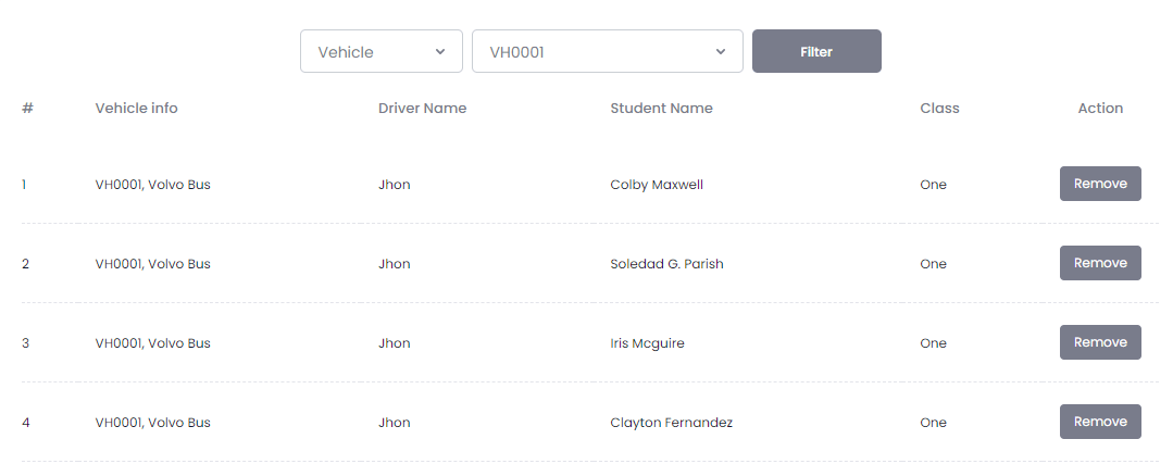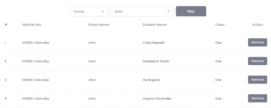 You can also filter the list by providing "Vehicle Number", "Driver Name" & "Class Number":