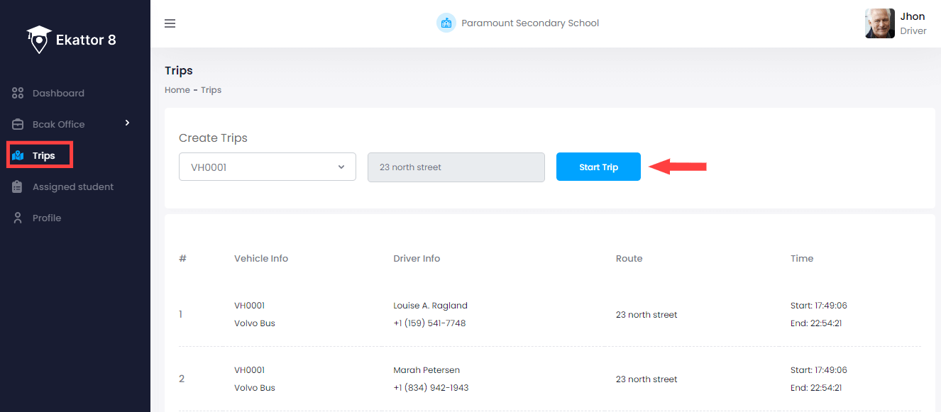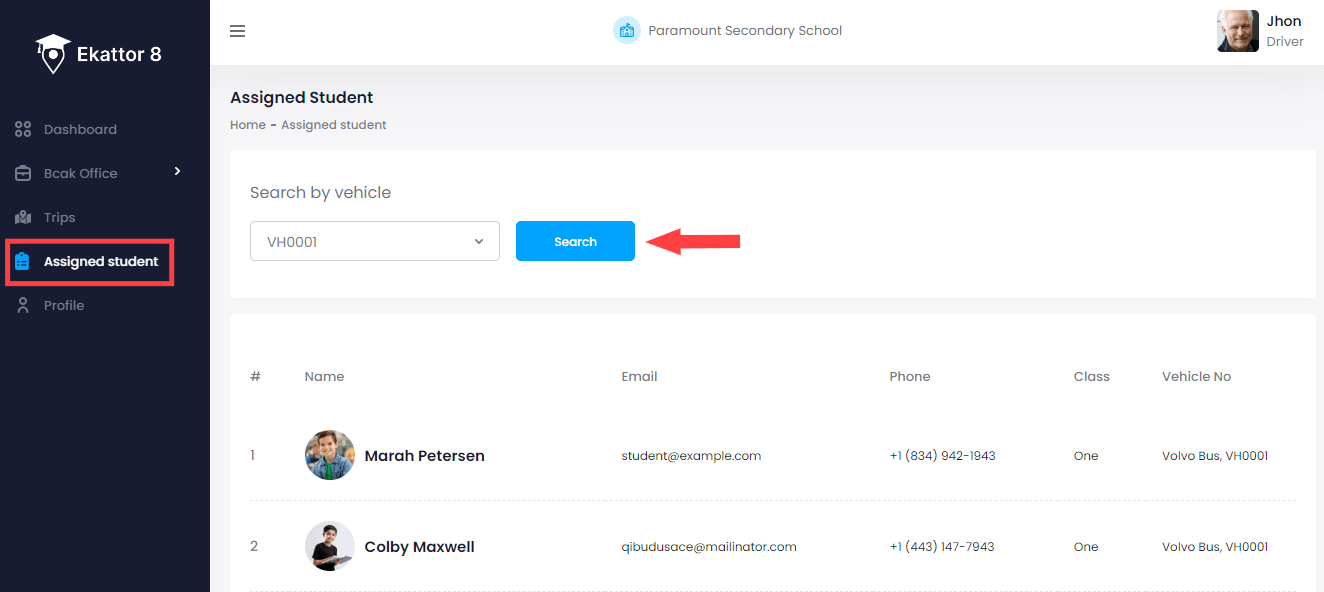 Drivers can also see the list of the students they were assigned. For this, the drivers can follow the steps below: