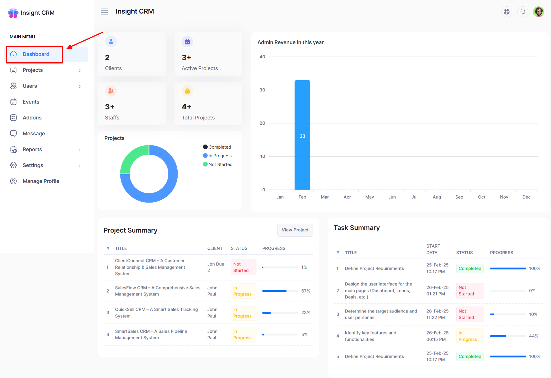 Insight CRM’s dashboard provides a comprehensive view of business operations, offering real-time analytics, sales tracking, and customer insights. With an intuitive interface, businesses can manage tasks efficiently, monitor performance, and make data-driven decisions for sustained growth and success.