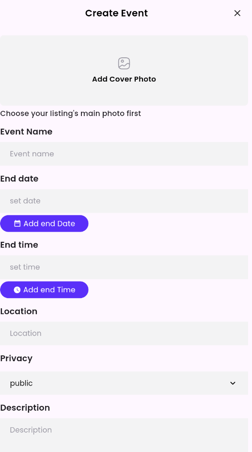 Note: If the users select the "Public" option as privacy, anyone in the application can mark themself as going or interested. If the users select the "Private" option as privacy, the users can mark themself as going or interested in who will get the invitation.