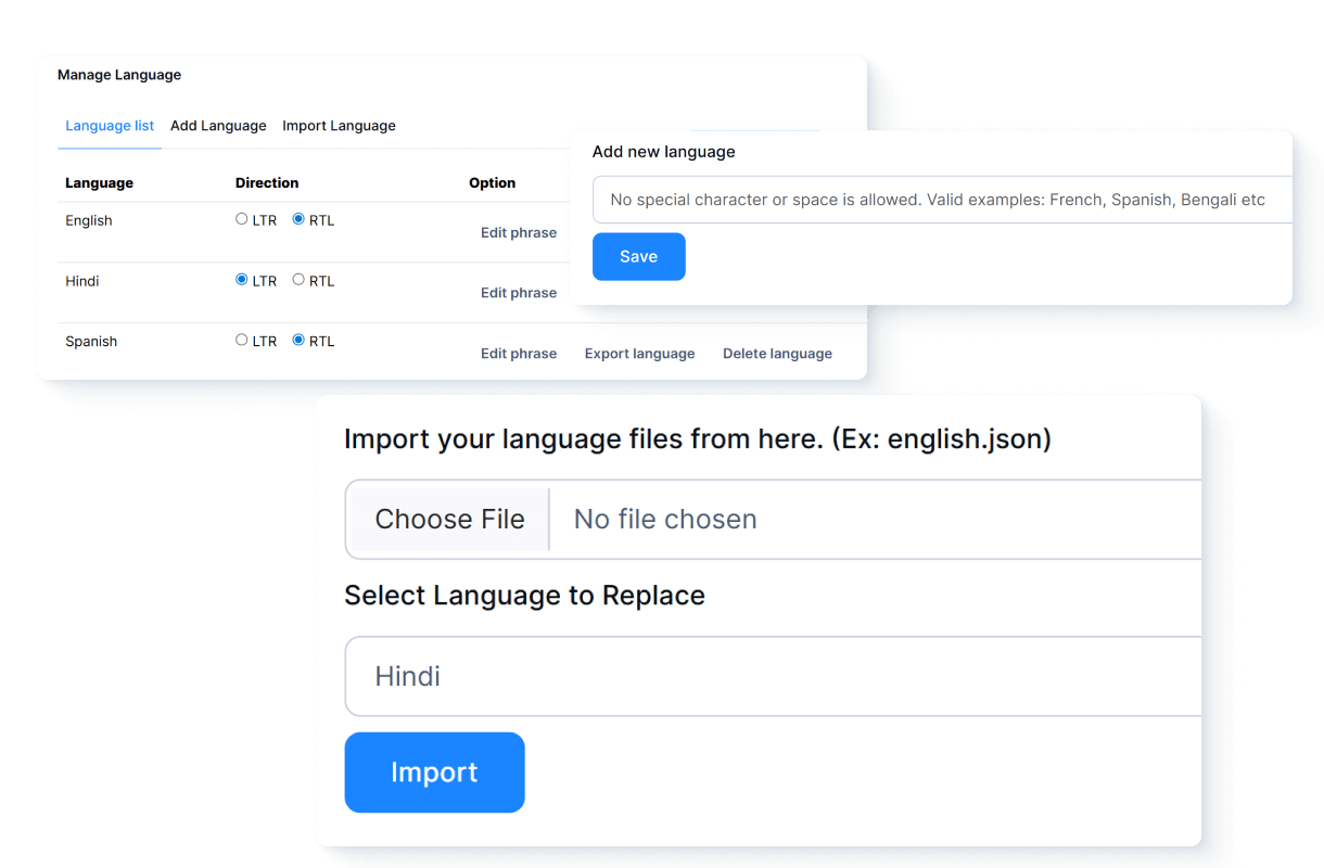 Academy LMS Laravel lets users switch languages easily, making learning accessible for everyone while admins manage translations in just a few clicks.