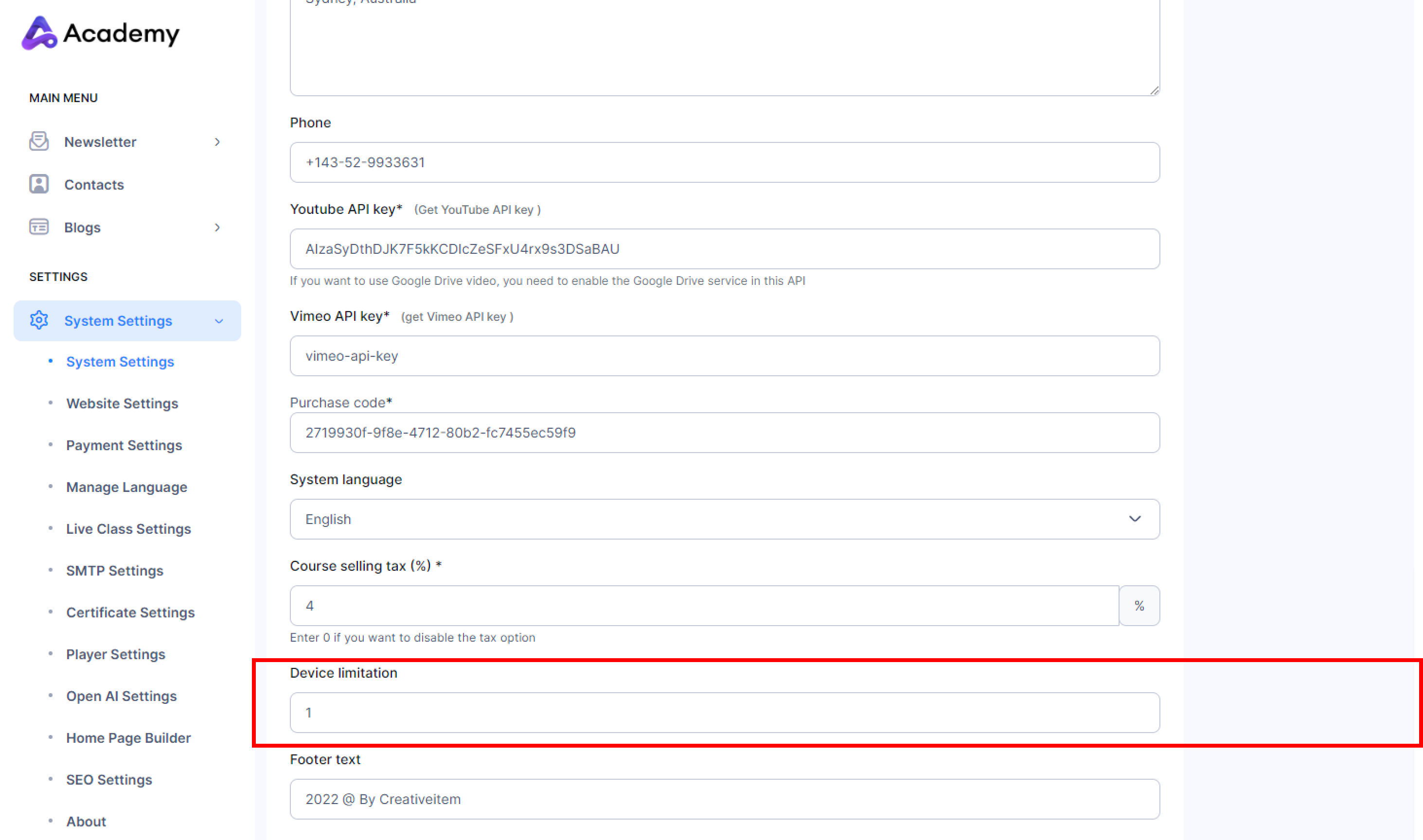 To prevent users from sharing login credentials for course access, integrated a login device limitation feature in Academy LMS Laravel. After the user's device count reaches the maximum number permitted by the administrator, the system will prevent them from logging in from another device.