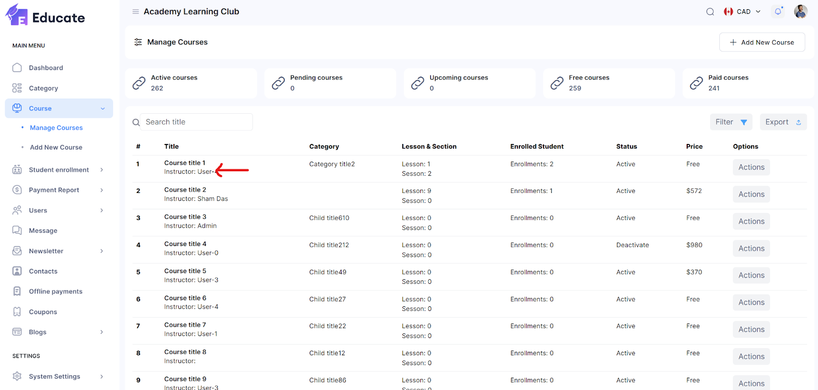 Then, click on any course that you would like to add lessons to.