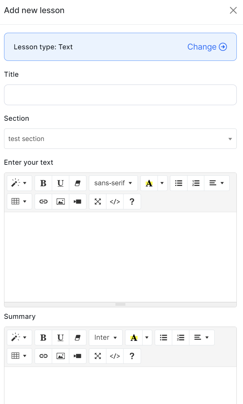 Select the "Add lesson" button to add a new Text lesson.