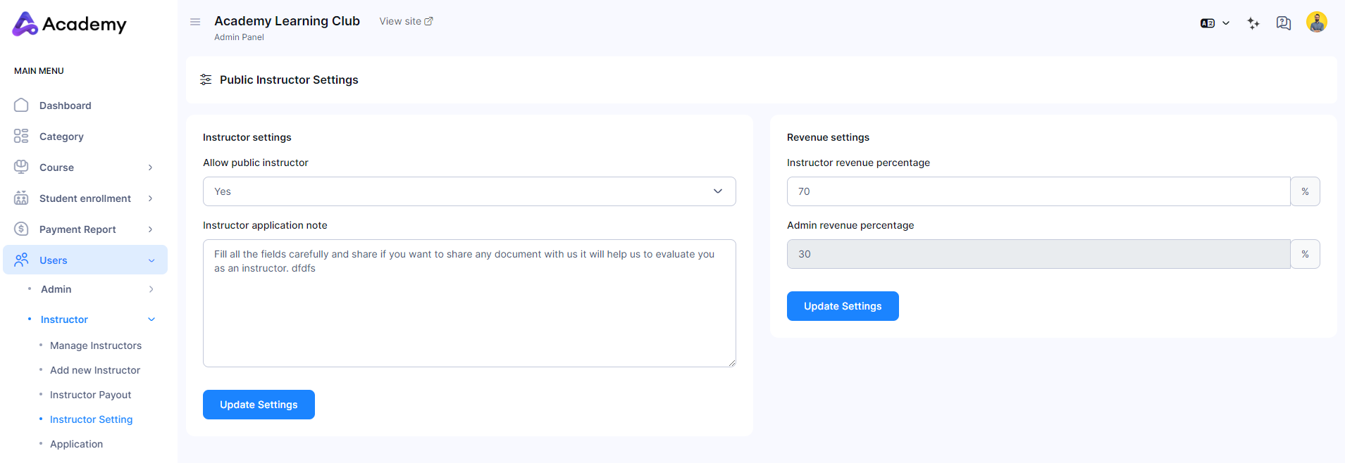 To learn more about the revenue sharing process for instructors as an admin, refer to the steps outlined in the earlier section covering the Instructor Settings option in the article.
