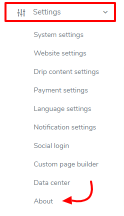 - Before installing the process, we highly recommend you check your application version. To check your application version, you have to navigate to the "About" section from the "Settings" button.