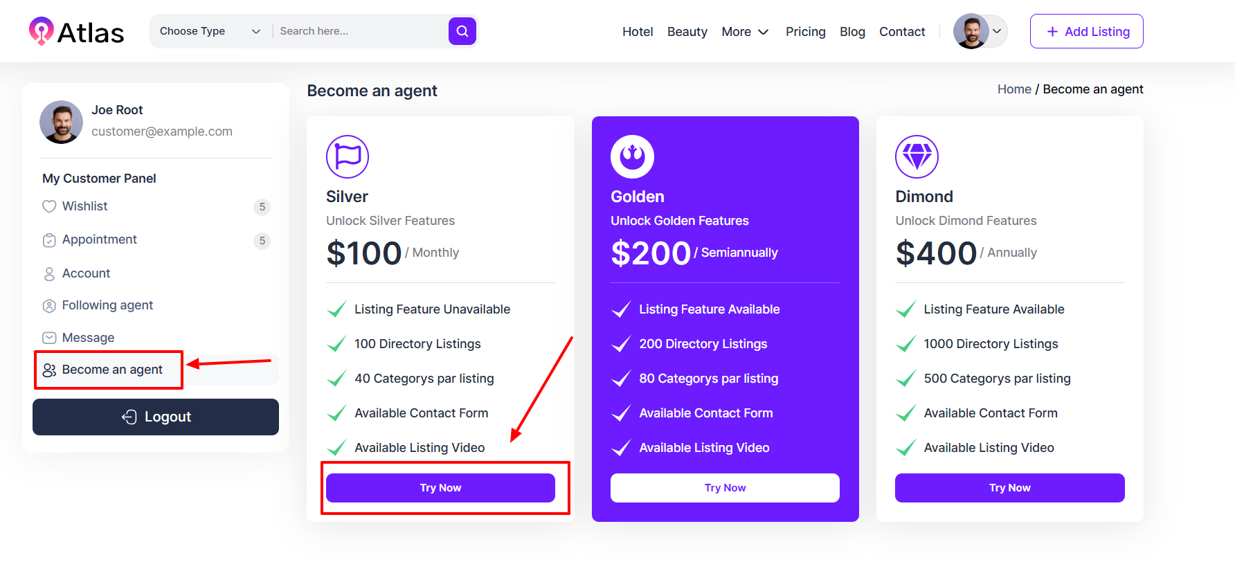 In Atlas Laravel, become an agent to unlock new business opportunities! Manage property listings, connect with clients, and grow your network. With user-friendly tools, Atlas makes it easy to succeed and expand your business effortlessly.