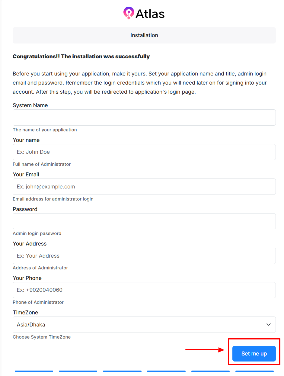 Please ensure that you have followed all the installation steps correctly; otherwise, you may encounter issues running the application. For any assistance, refer to the support documentation or contact the Atlas Laravel Support Center.