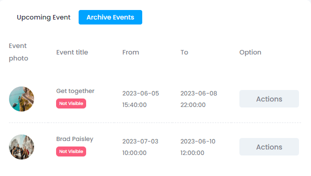 Event: In this section, alumni can view upcoming and archive events created by the admin.