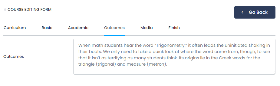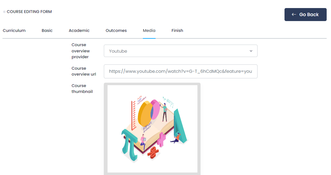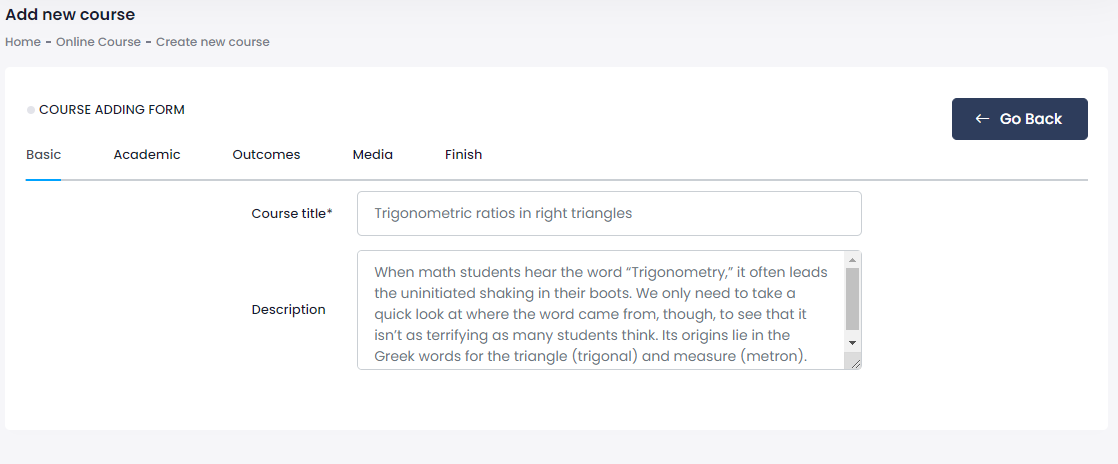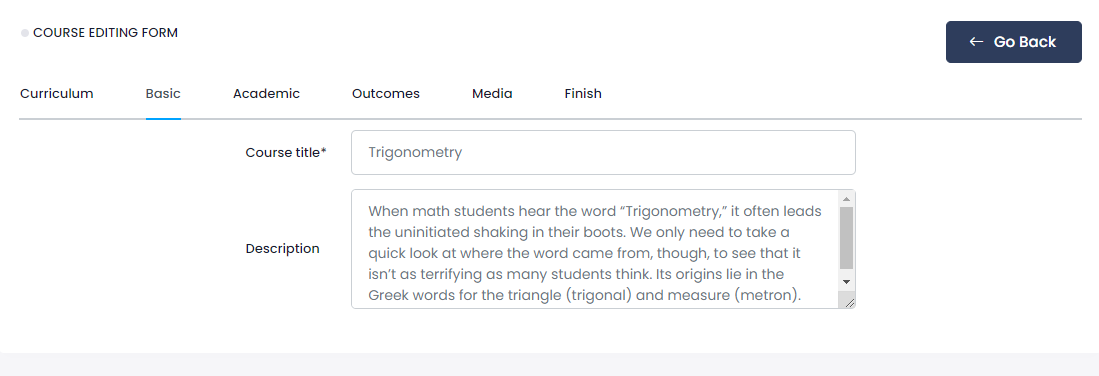 Basic: In this section, you can update basic information about your course. You can edit the Course title & Course Description according to your preference.