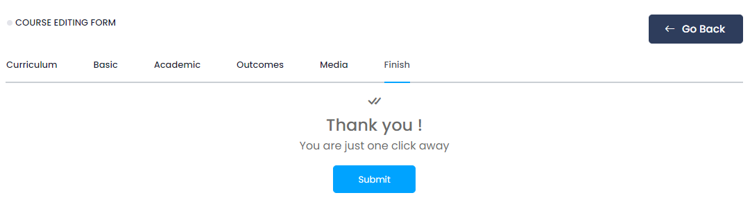 After creating a new course you can update & Modify this course. For updating and modifying the course, select the "Edit" button from the "Action" bar.