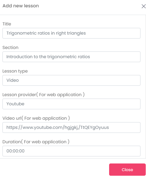 For deleting a lesson you need to click on the "X" button from the lesson section.