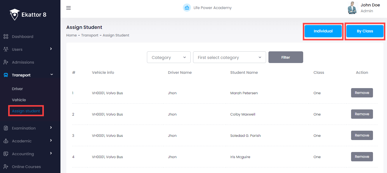 Assign Student: After configuring the Driver and Vehicle section, now you need to fill this Assign Student Section. You can follow the steps below for setting this section:
