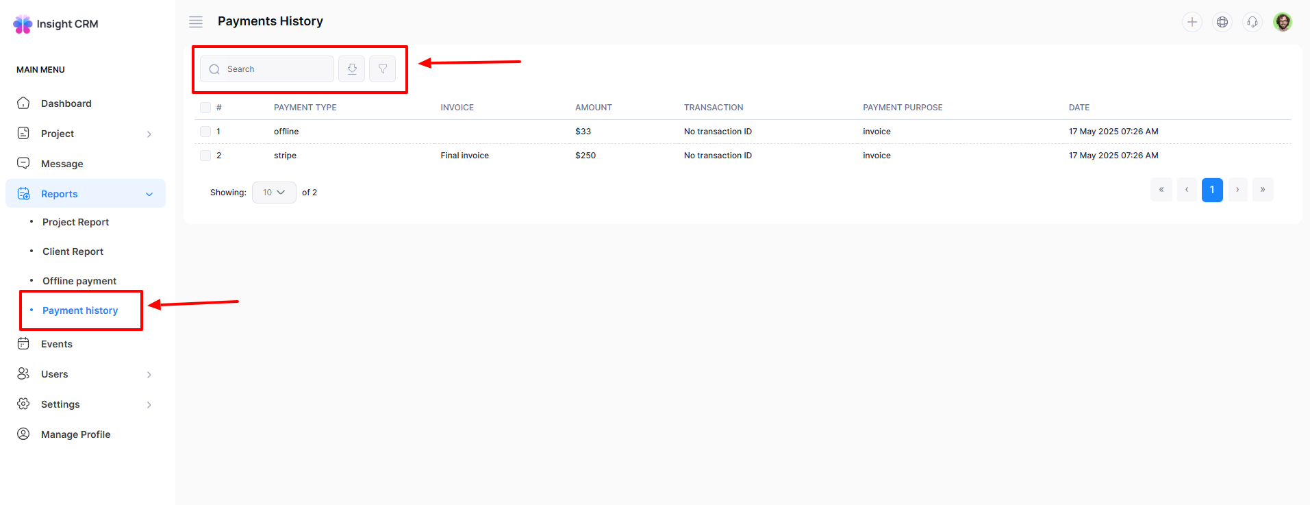 Insight CRM’s Payment History feature offers a complete record of all transactions, allowing businesses to track, verify, and manage client payments efficiently. It ensures financial transparency, simplifies audits, and helps maintain accurate billing, strengthening trust and streamlining business-to-business financial operations.