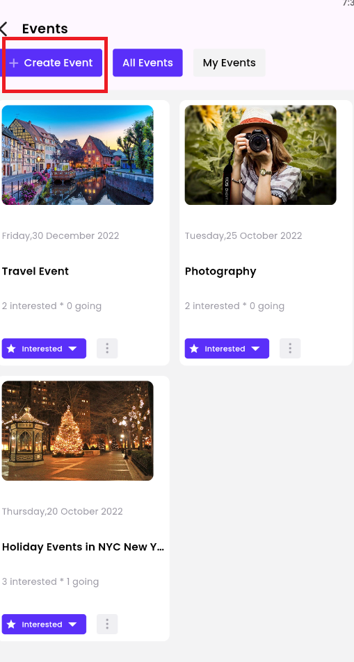 Note: If the users select the "Public" option as privacy, anyone in the application can mark themself as going or interested. If the users select the "Private" option as privacy, the users can mark themself as going or interested in who will get the invitation.